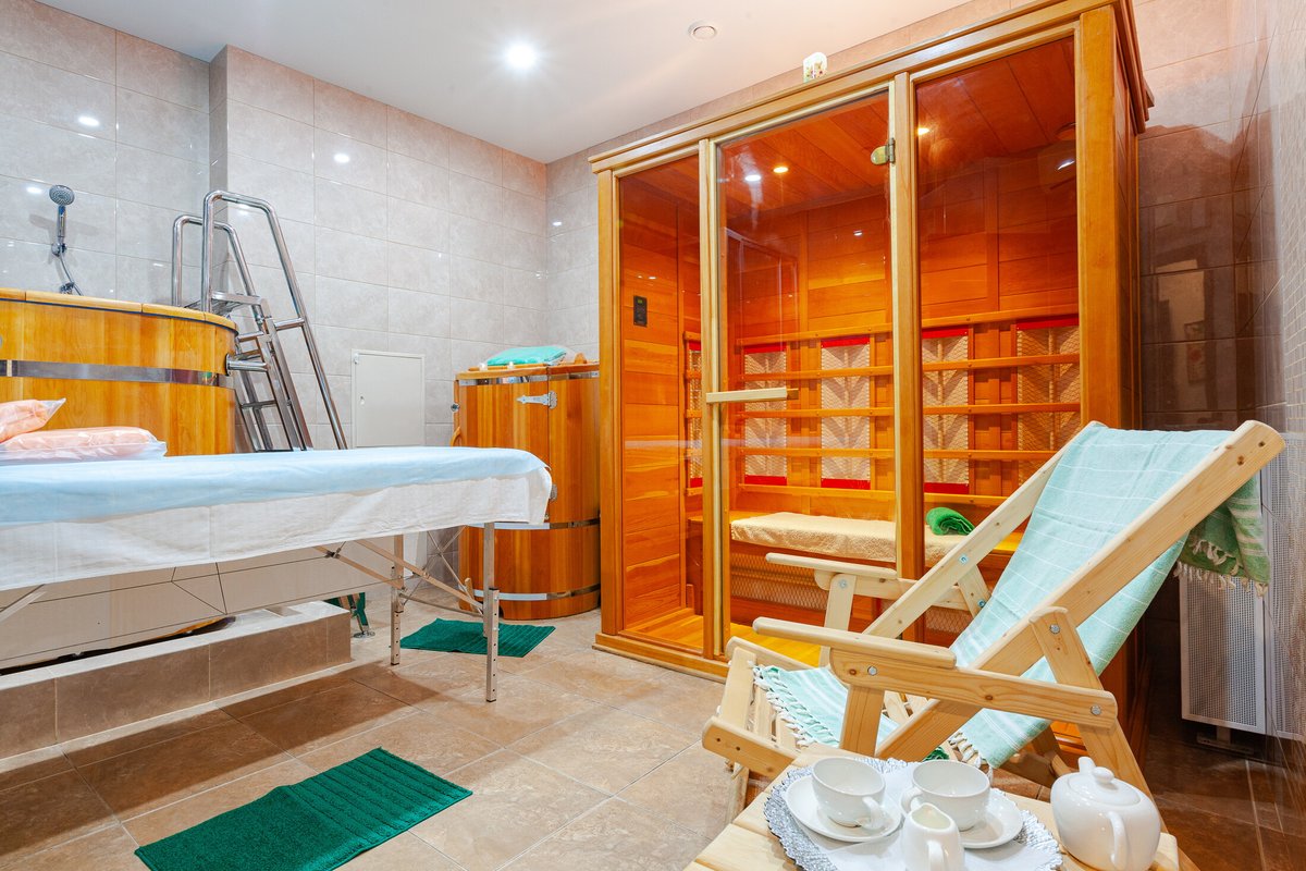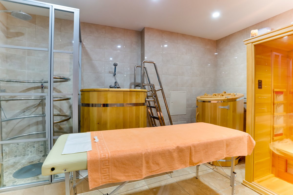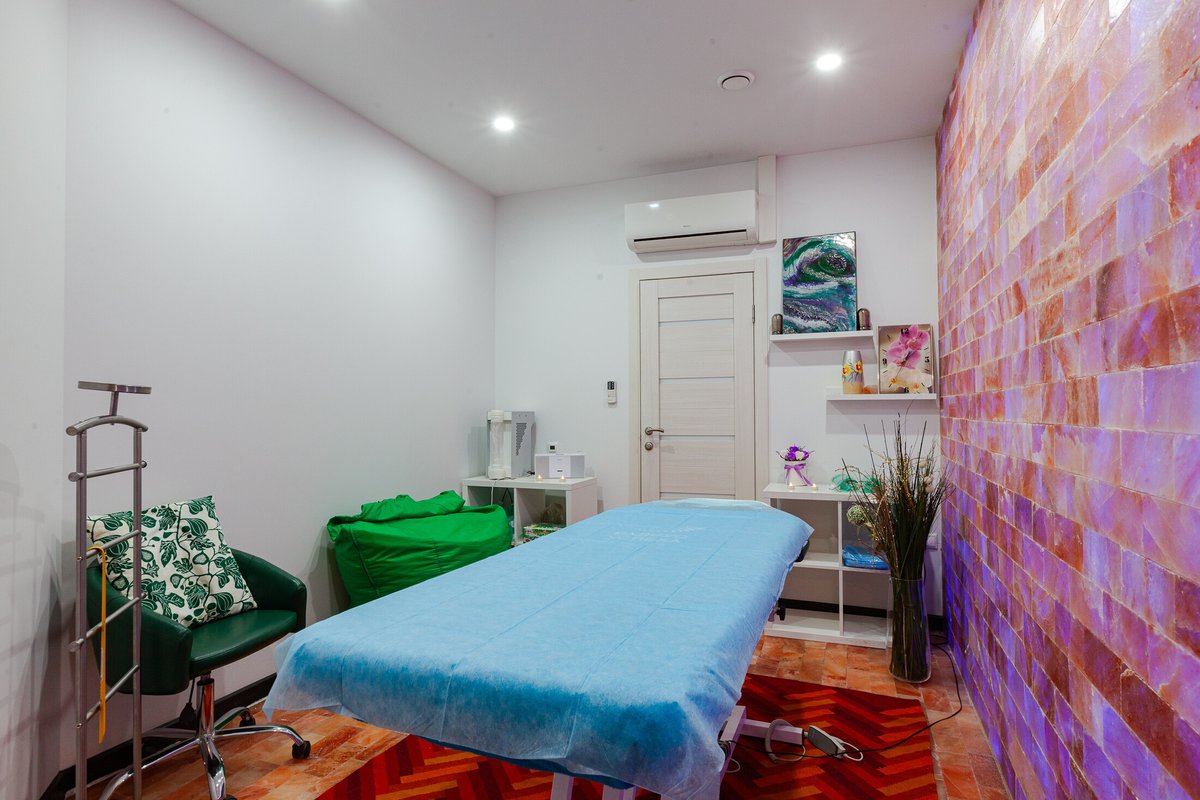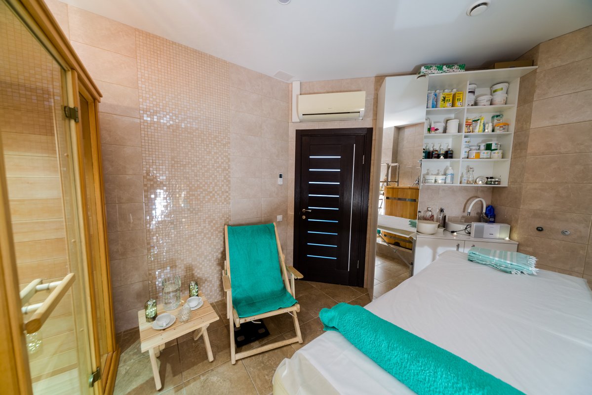 Также к услугам наших гостей соляная пещера, антицеллюлитный массаж, массаж головы и лица, фотоэпиляция, чистка лица, шугаринг, LPG, косметология, в том числе аппаратная, пилинг, обертывания, фитобочка, миостимуляция, вакуумный массаж, контурная пластика, биоревитализация, мезотерапия, мезонити, инъекции ботокса, гиалуроновая кислота, макияж, коррекция формы бровей, окрашивание ресниц, татуаж, тату, мелирование, тонирование, выпрямление, укладка, химическая завивка, биозавивка и маски для волос, вечерние и свадебные прически, свадебный макияж, мужские стрижки, педикюр, в том числе аппаратный, рефлексотерапия и спа-уход для ногтей. Принимает трихолог, специалист по мезотерапии кожи головы.